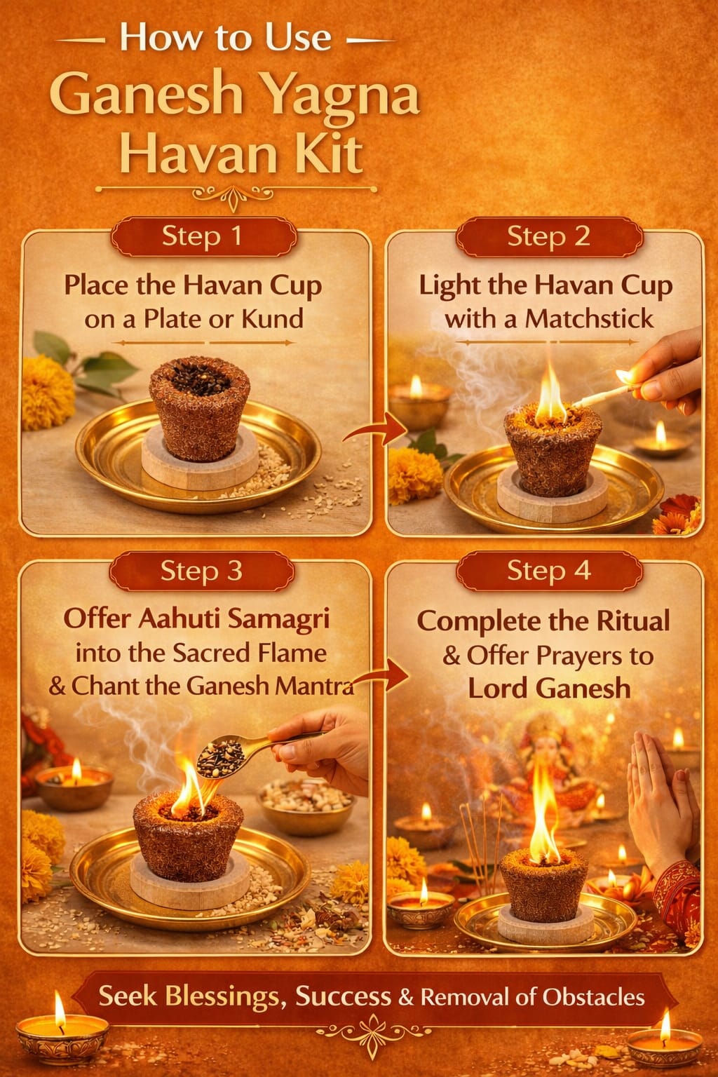 Discover the timeless tradition of Ganesh Yagna havan,now simplified for daily use with Panchgavya desi cow dung havan cups with specially formulated Aahuti Samagri and Divine Mantras.
